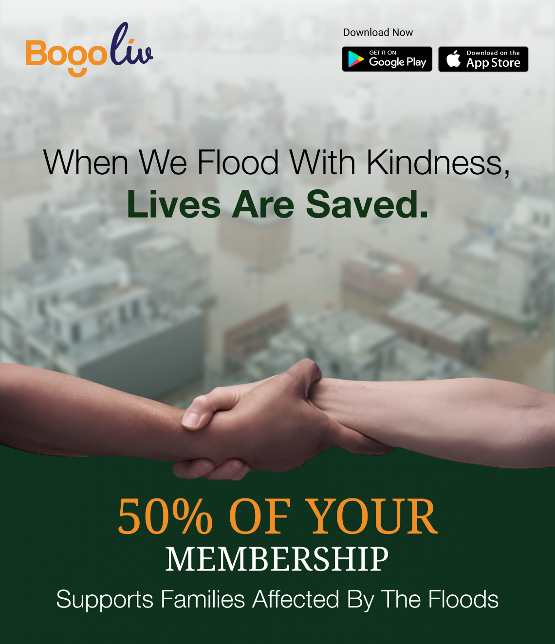 - The Bogo Liv Flood Relief Campaign (“Campaign”) is a limited-time initiative by Bogo Technologies Pvt. Ltd. (“WE / US / OUR”) under which 50% of net revenue generated from eligible membership purchases will be contributed towards flood relief efforts. Customers qualify by purchasing a new membership, renewal, discounted membership, or upgrade through the Bogo Liv app during the campaign period.
